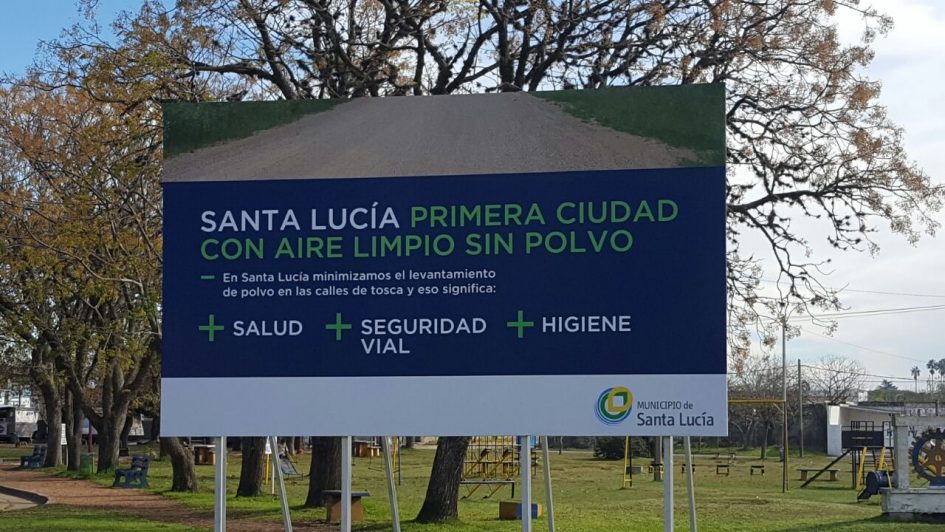 Si hay un cartel que ha despertado polémicas es el que encontramos en la rotonda de un límpido color azul y grandes letras celestes. Los vecinos leyeron, volvieron a leer, luego se preguntaron: ¿Es broma?  No, se trata del anuncio del programa ya aplicado por el Municipio local, de riego en las calles de tosca de Santa Lucía. El cartel y las reacciones provocadas comenzaron a popularizarse en el boca a boca y de redes en redes.
