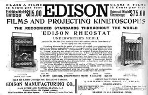 En Estados Unidos el primero en lograr imágenes en movimiento fue Eaedweard Muybridge con placas fotográficas de un caballo corriendo una carrera en un hipódromo, las cuales fueron proyectadas con una «linterna mágica» (aparato óptico precursor del cinematógrafo). Llamó a su aparato «zooprakicopio». En 1886 mostró su invento a Edison proponiéndole trabajar juntos en este proyecto en unión con el fonógrafo, para obtener movimiento y sonido a la vez.