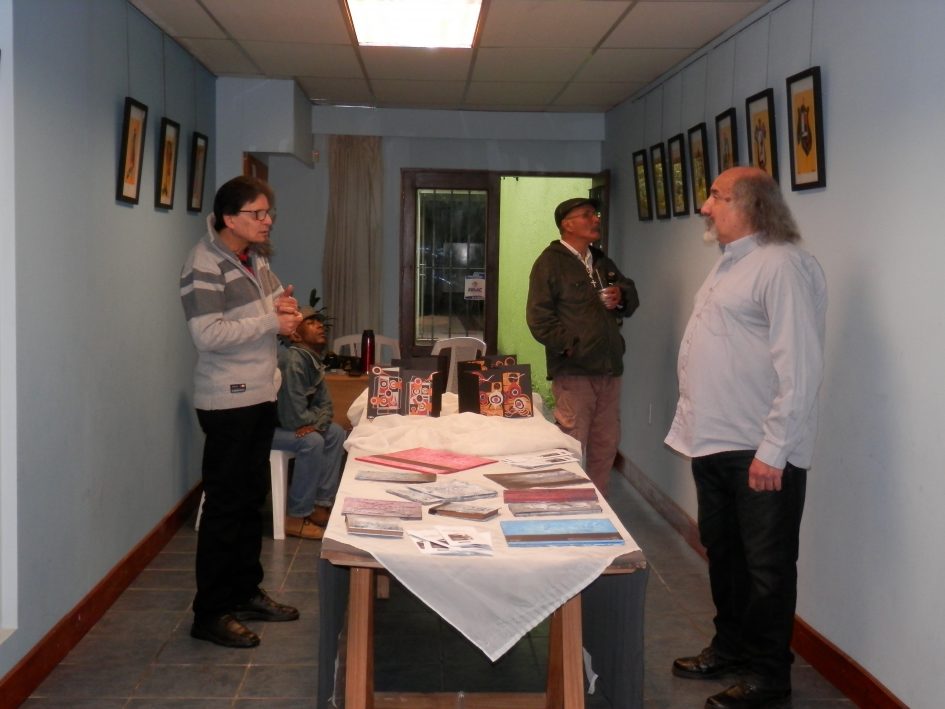 Rodolfo manifiesta que esta exposición la toma como una despedida por un tiempo porque se va precisamente con una muestra hacia Europa, la que será inaugurada el martes 3 de octubre en Alcoy, Valencia, España, y que permanecerá hasta el 27 de noviembre. Para sus amigos, fue un punto de encuentro, pero también de imaginar su regreso para disfrutar de charlas e intercambio en su ciudad de Santa Lucía, la recostadita al río.