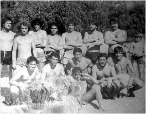 Tarde de río ,partidos de cabeza con el agua por los tobillos, 8 contra 8,también voleyball.Epoca de mucho pelo,poca o nula panza y musculos tensos o sea «época de juventud,»que ahora ya veteranos pensás «que rápido se pasó».Sin embargo no es tan así si uno ve todo lo vivido en los últimos 35 años.El camino es para delante muchacho,solo mirar atrás para tomar impulso y seguir, así debe ser la cosa. En la foto creo reconocer de izquierda a derecha y los nombro por apellido como un equipo de fúbol. De pie:Torres,Apratto,Perez,Batista,mi hermanito Imoda.Abajo:paso,Alonso (que jugador de fútbol!!!) Icardi (se «masticaba»la cancha)paso,Vidal y paso. :abajo de Silvio es su hermano Oliver,acabo de reconocerlo,creo (Ruben Rodriguez)