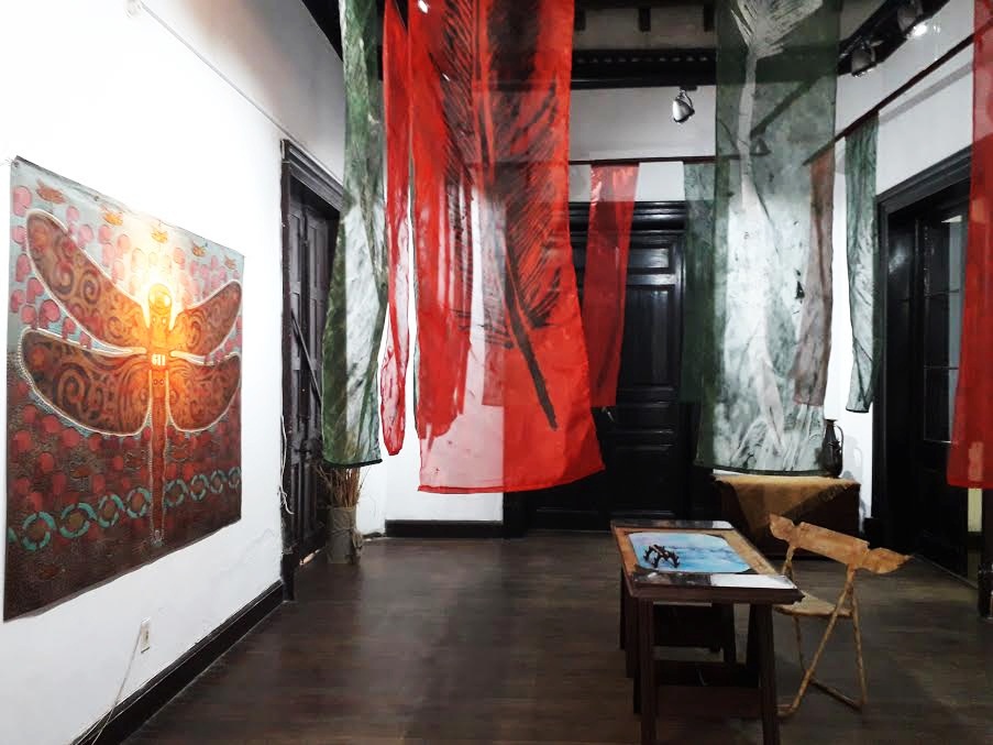 enrome libélula que el artista pintó y decidió integrar entre sus telas.